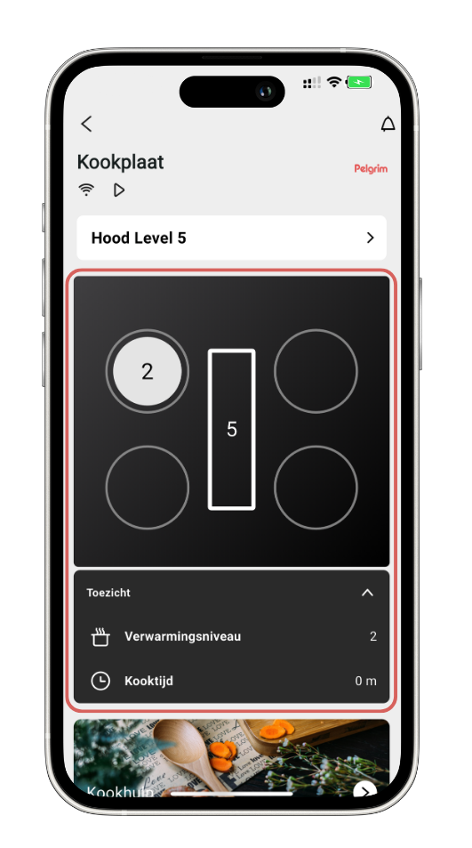 Inductiekookplaten kunnen om veiligheidsredenen niet op afstand worden bediend. Via de ConnectLife™ app kun je jouw kookplaat wel eenvoudig monitoren en gebruikmaken van handige functies, zoals: