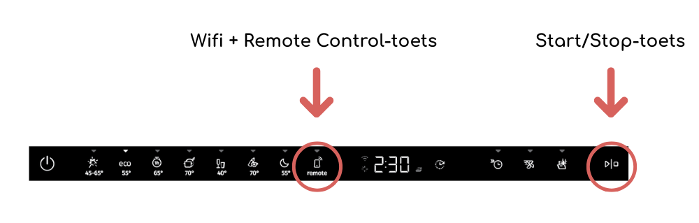 Om gebruik te maken van alle mogelijkheden zoals het starten van een vaatwasserprogramma op afstand, is het ook nodig om de ‘Op afstand’ modus (Remote Control) handmatig te activeren. Dit moet je bij ieder gebruik opnieuw inschakelen op het apparaat.